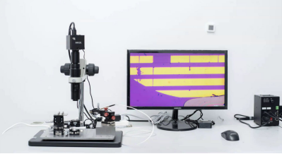 显微操作平台有转移平台和电子显微镜两部分集成。可在显微镜下进行低成本二维光电子器件的制备以及二维等单层材料精确定点转移,实现了低维材料精确转移的低成本操作。目前用于实现范德华异质结,及电学器件的制备。