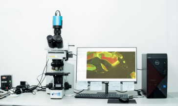 荧光显微镜包括配有405nm和白光光源,配有检偏及角度可调起偏器,可拍摄5x-100x下明场,暗场,荧光图像。同时可以拍摄二维材料光学及荧光照片。