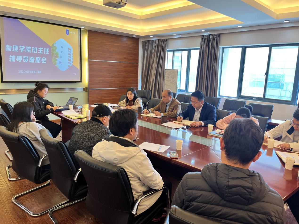 为进一步加强学风建设,充分发挥班主任和辅导员在学生成长成才中的合力引领作用,4月7日,必威BETWAY西汉姆联于理学楼517会议室举办班主任、辅导员联席会,学院党委书记陈修文、院长刘友文、党委副书记欧珊、教学办主任刘威及本科生班主任、辅导员参加会议。会议由欧珊主持。