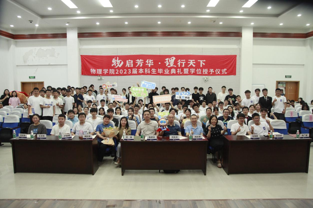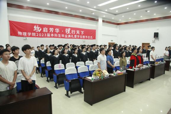 6月19日下午,必威BETWAY西汉姆联“物启芳华,理行天下”2023届本科生毕业典礼暨学位授予仪式于理学楼报告厅举行。必威BETWAY西汉姆联党委书记陈修文、院长刘友文、党委副书记欧珊、副院长阎志军、学院党委委员、院长助理、各系、中心主任、专业老师以及2023届全体毕业生出席典礼。为充分发挥典礼的育人效果,学院低年级全体本科生也参加了本次典礼,聆听优秀学长学姐的故事分享。典礼由毕业生陈豪杰、江淼主持。