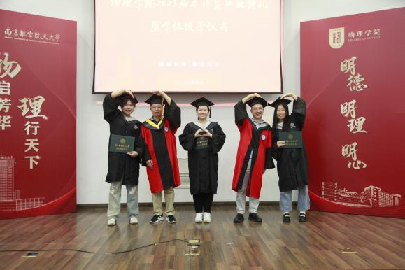 刘友文点赞同学们的“小粒子”设计并寄语毕业生,他指出,大学四年对物理一点一滴的探索赋予了同学们格物致知的品格,这将让人受益终身,希望每位同学都能带着南航人的自信、物理人的智慧,奔赴四方、开启新篇!