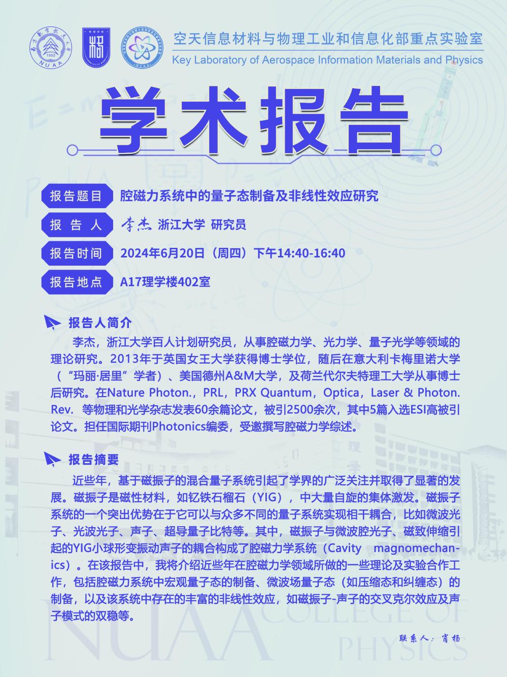 审核:腔磁力系统中的量子态制备及非线性效应研究
