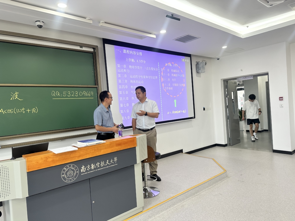 9月2日10:00,书记陈修文、院长刘友文分别带领教学办、学工办工作人员准时到达天目湖校区T2408和将军路校区10409教室对《大学物理I(2)》和《数字电子技术》课程进行巡查。当天,副书记欧珊、副院长阚彩侠等院领导及相关工作人员巡查将军路和天目湖校区共计6门课程。