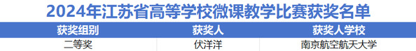 “2024年江苏省高等学校微课教学比赛”获奖名单也于近日揭晓。该赛事旨在提升教师教学水平,促进一流专业与一流课程建设,加快推进传统教学向智能教育的转型,真正做到以赛促教、以赛促改、以赛促建、以赛提质。我院伏洋洋老师参赛,获二等奖。