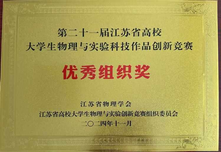 由江苏省物理学会、江苏省高校大学生物理与实验创新竞赛组织委员会主办,盐城工学院承办的第二十一届江苏省高校大学生物理与实验科技作品创新竞赛于 2024年11月1日至3日在盐城工学院(希望大道校区)举行。我校代表队共获奖17项。