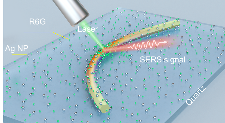 多巴胺(DA) 是一种重要的神经递质,体内 DA 浓度的异常变化可能引发各种神经系统疾病,因此开发出精确检测低浓度下DA信号的方法对于治疗效果评估至关重要。表面增强拉曼散射(SERS)是一种利用金属纳米颗粒的近场增强效应放大分子信号的光谱分析技术,被广泛应用于神经递质的痕量检测。微腔结构的ZnO微米线对光场具有高度局域性,能够增强光与物质间的相互作用,显著放大分子的拉曼信号。此外,ZnO还具备卓越的压电性能,通过外加应力诱导ZnO表面产生极化电荷,有助于吸引周围的极性分子或带电粒子附着在材料表面,从而提升传感灵敏度。本工作构建了一种压电增强型ZnO/Ag微腔结构SERS基底,通过协同耦合压电效应、WGM效应及LSPR效应三种机制,成功实现了R6G 低至 5×10-13 M的检测限,增强因子可达1.05×1011,能够检测浓度低至 10-13 M 的多巴胺分子信号,为神经科学、心理健康和神经系统疾病诊断方面的研究开辟了新的途径和策略。