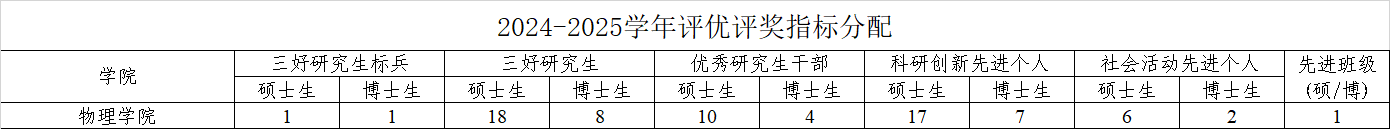 三好研究生标兵、三好研究生、优秀研究生干部、科研创新先进个人、社会活动先进个人荣誉可兼得。