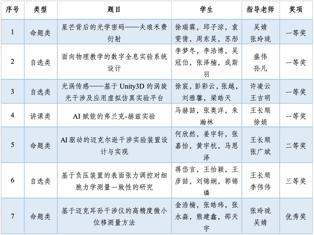 南航代表队在学校教务部的大力支持和必威BETWAY西汉姆联的精心组织下,共派出7支队伍参赛,其中有5支队伍成功晋级全国总决赛,共获一等奖4项、二等奖1项、三等奖1项,优秀奖1项,创参赛以来最好成绩!我校一等奖获奖数量与获奖比例均位居全国参赛高校前列,是一等奖覆盖所有赛道(讲课类、自选类和命题类)的高校,同时我校连续第六年成功摘得优秀组织奖,充分彰显了学院在物理实验教学与创新人才培养方面的深厚积淀。
