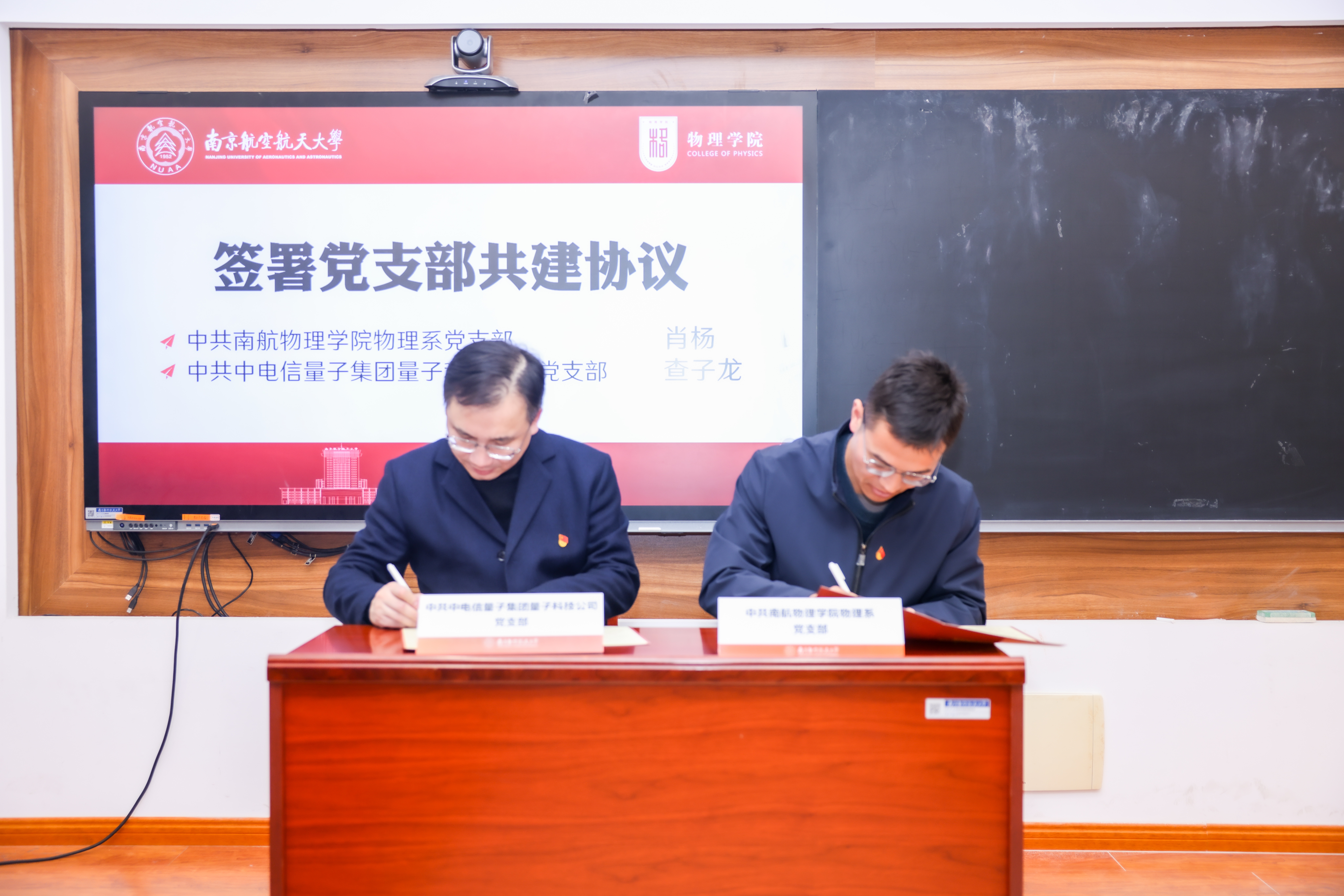 会上,双方还正式签署两项协议。必威BETWAY西汉姆联党委书记陈修文与中电信量子集团苏赣区域支撑中心总经理鞠峰代表校企双方签署战略合作协议,约定在科研合作与技术攻关、人才培养与基地建设、学术交流与科研活动、联合攻关与成果转化、学科建设等方面开展协同创新。必威BETWAY西汉姆联物理系党支部书记肖杨与中电信量子集团量子科技公司党支部代表查子龙签署党支部共建协议,确立以党建引领产学研资源整合、人才联合培养的合作模式。