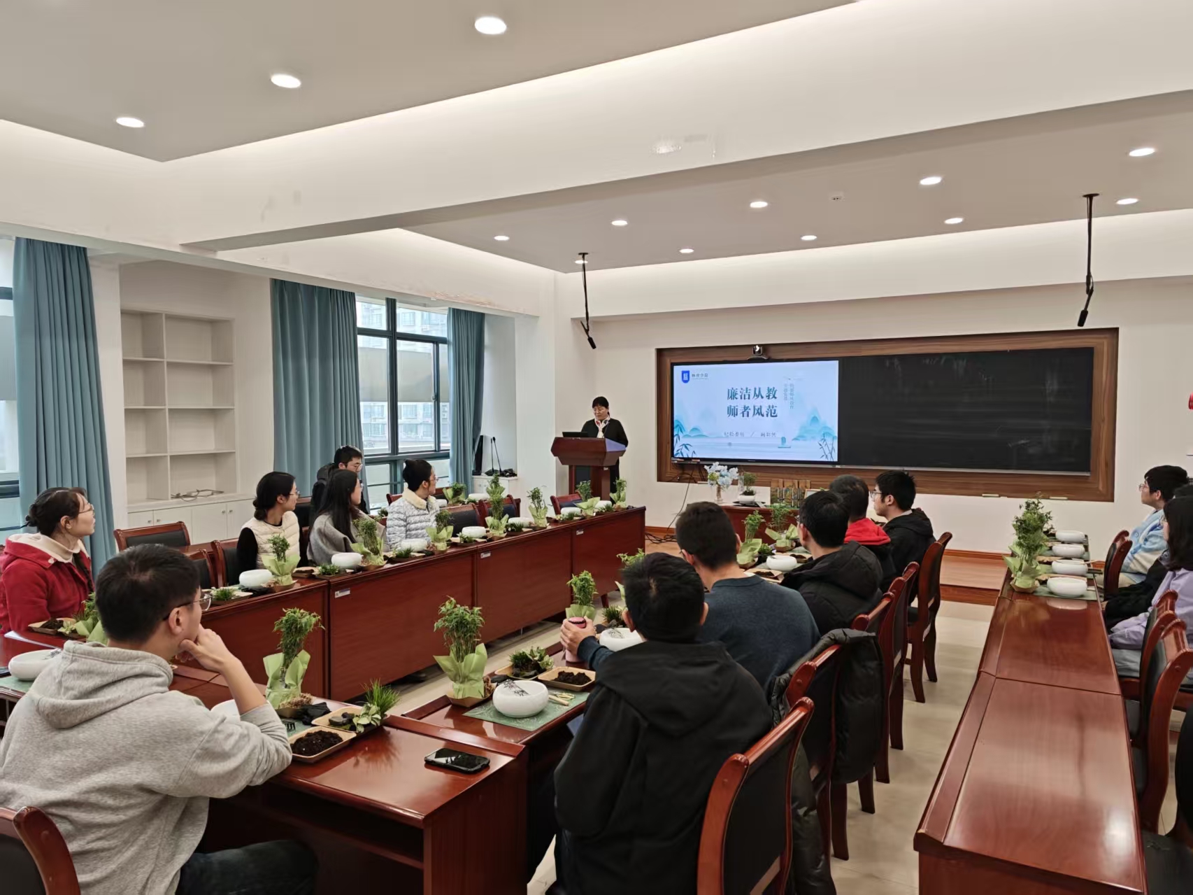 为巩固拓展中央八项规定精神学习教育成果,持续推进作风建设常态化长效化,进一步加强“清廉学院”建设,12月11日,必威BETWAY西汉姆联举办“廉洁从教·清风润院”师德师风教育主题活动。学院党委纪检委员阚彩侠以及20余位师生代表参加本次活动。
