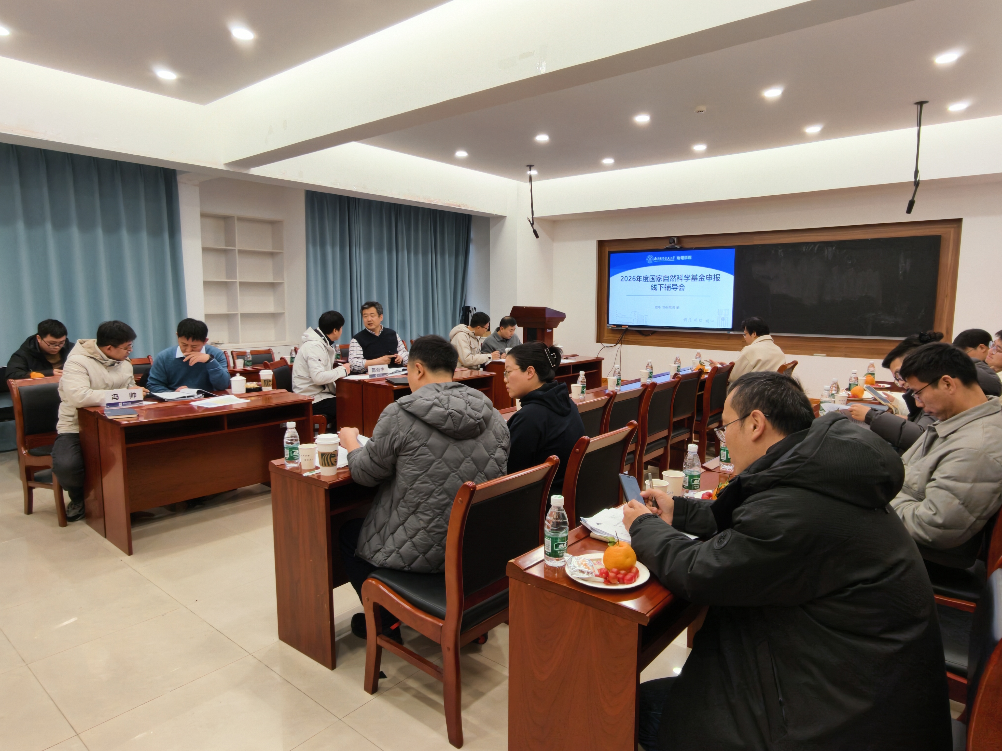 3月1日下午,学院在理学楼519会议室组织线下辅导会,邀请田鹤教授、郭海中教授、冯帅教授担任辅导专家,继续采用“一对一交流指导”的方式进行。专家围绕科学问题的聚焦程度、研究目标与技术路线的匹配性、可行性论证的充分性以及前期研究基础支撑度等方面,逐条提出修改意见,为参会教师进一步明确了申报书细化与完善的提升路径。